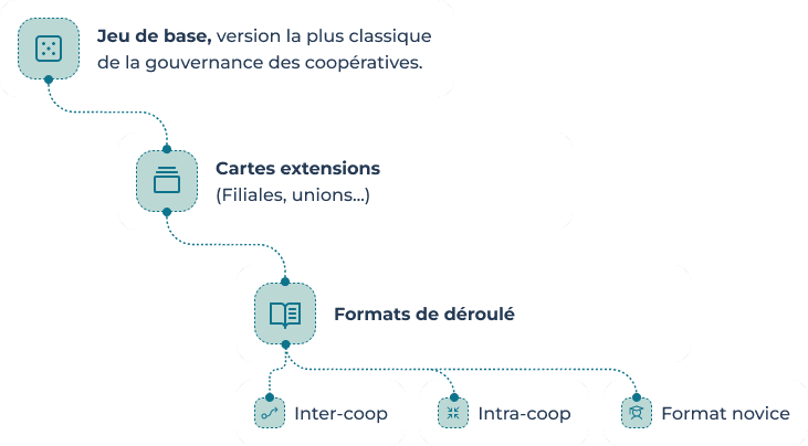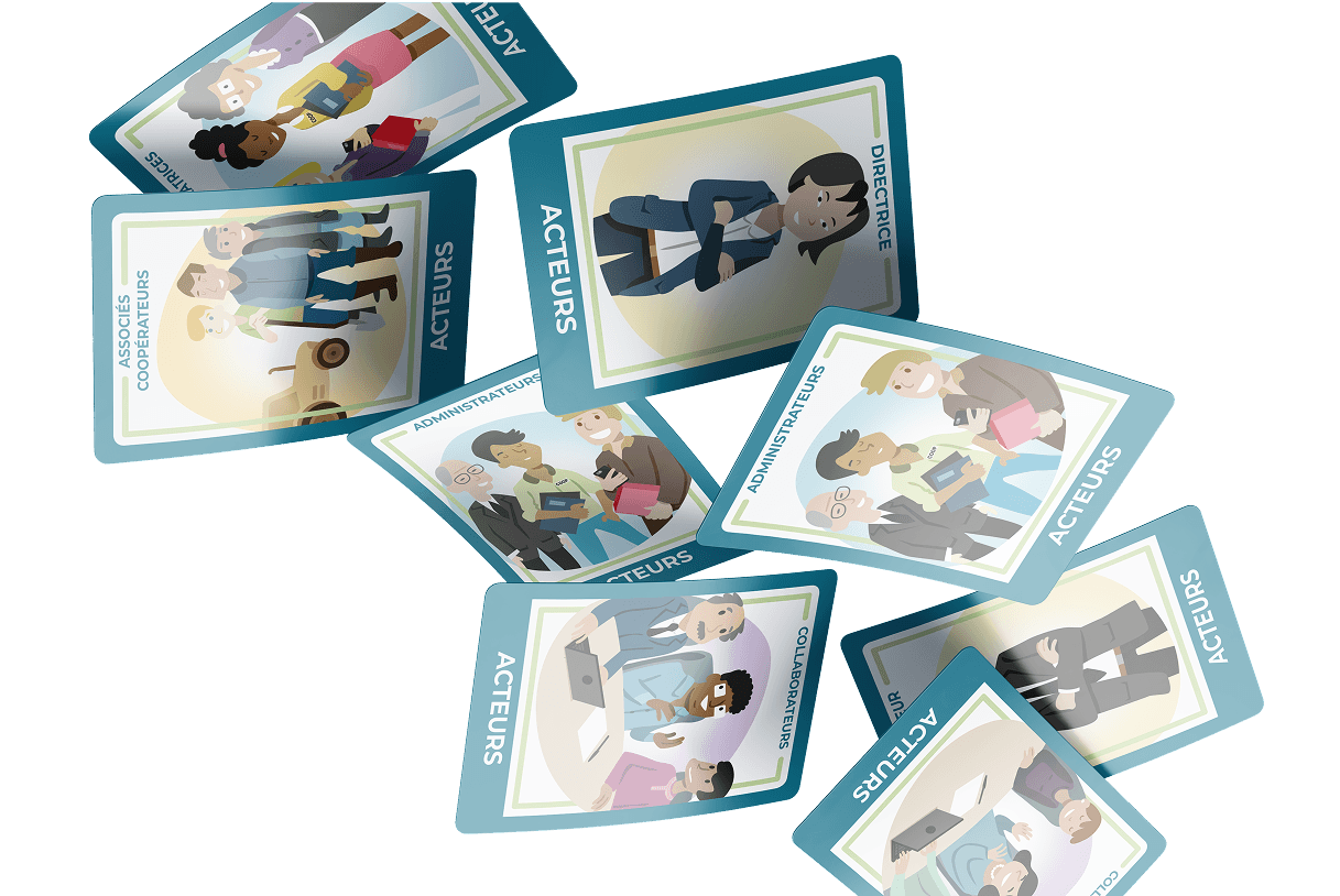 La boite avec les cartes et outils de la Fresque permettant de reconstituer la logique de la gouvernance coopérative (principes, rôles, bonnes pratiques…).